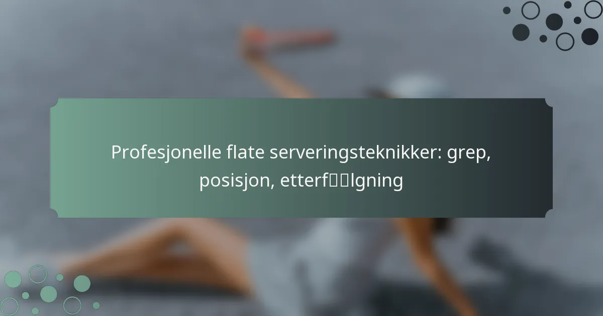 Å mestre den profesjonelle flate serven i tennis avhenger av tre essensielle komponenter: grep, posisjon og oppfølging. Hvert element spiller en viktig rolle i å forbedre både hastighet og nøyaktighet, noe som gjør det til en grunnleggende ferdighet for spillere. Et riktig grep maksimerer kraft og kontroll, mens en optimal posisjon sikrer balanse og justering for en effektiv serve.
